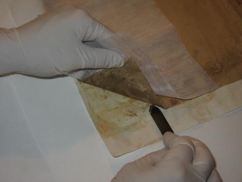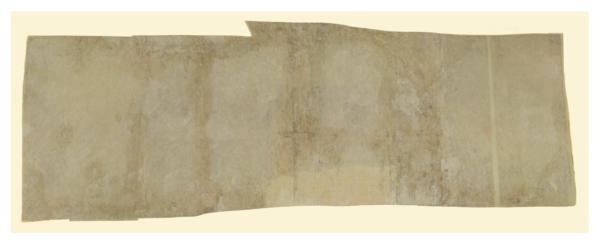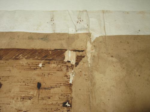 Il disegno si presentava diviso in due parti. Presentava un deposito superfiale diffuso e preoccupanti lacune e strappi.