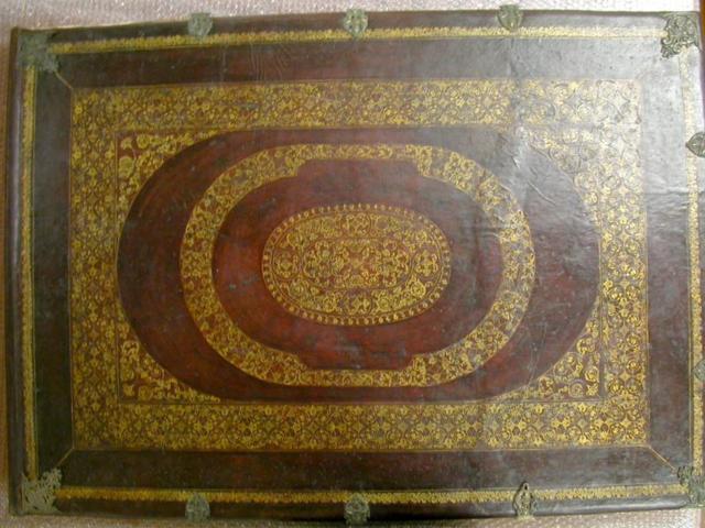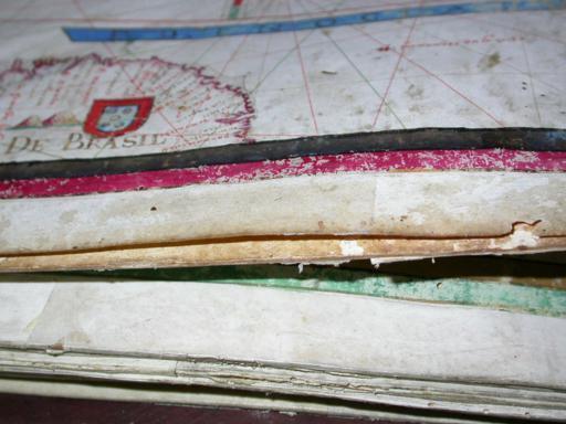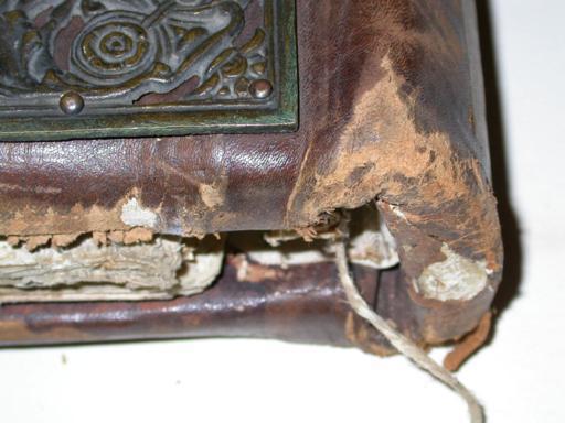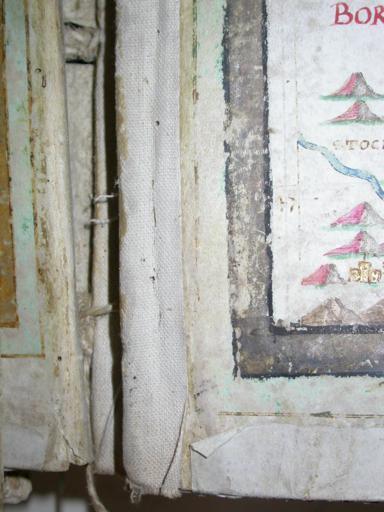 STATO DI CONSERVAZIONE L’ opera presentava un deposito superficiale diffuso sulle carte. Queste ultime, inoltre presentavano delle lacune e degli strappi. I pigmenti presentavano rischi di distacco dal supporto. La controguardia posteriore presentava un preoccupante rigonfiamento. La coperta riportava un deposito superficiale consistente, oltre a delle lacune e a dei fori da camminamento da tarlo. Le chiusure metalliche della coperta erano mancanti e, laddove presenti, fortemente danneggiate.